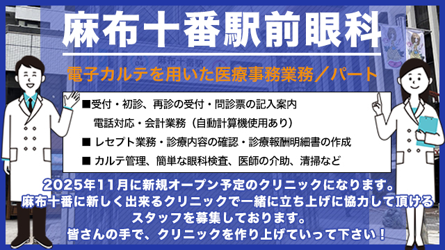 ※医療事務経験必須、眼科クリニックでの経験ある方は尚可
