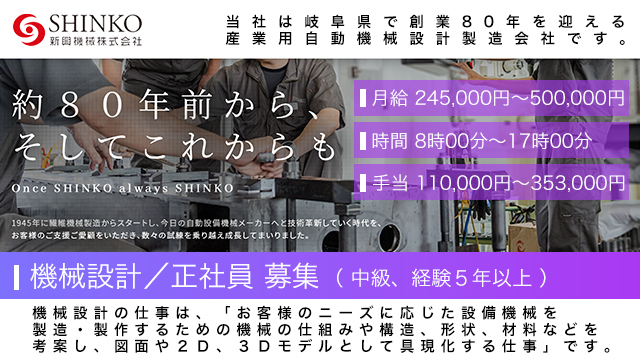 設備機械設計製造は、世の中に「もの」がある限りなくならない仕事のひとつです。